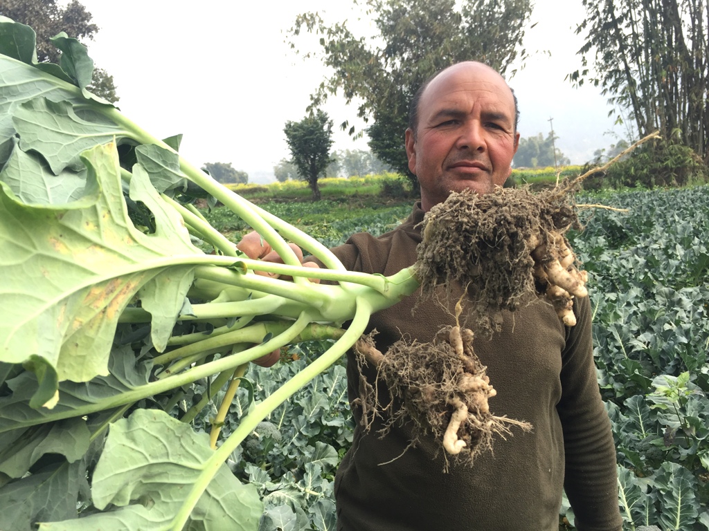 महानगरपालिका वडा नम्बर २५ हेम्जा किसान विश्वराज कुँवरको आम्दनीको स्रोत नै तरकारी उत्पादन हो । तीन वर्ष अघि सम्म उनले ५ रोपनी क्षेत्रमा काउली, बन्दा, ब्रोकाउली लगाएर राम्रो आम्दानी गर्दथे । दुई छोरा, छोरी, भान्जाको पढाई देखि घर खर्चको आधार नै तरकारी उत्पादन हो । बन्दा, काउली, ब्रोकाउली उत्पादनबाट एक सिजनमा १ लाख बढी बचत हुन्थ्यो । पछिल्लो ४ वर्ष देखि काउली, बन्दा, ब्रोकाउलीको जरामा गाँठे रोगको संक्रमण बढेपछि ठाडै तरकारीका बिरुवा ओइलाएर मर्न थालेपछि आम्दानी स्वात्तै घटेको कुँवरले सुनाए ।