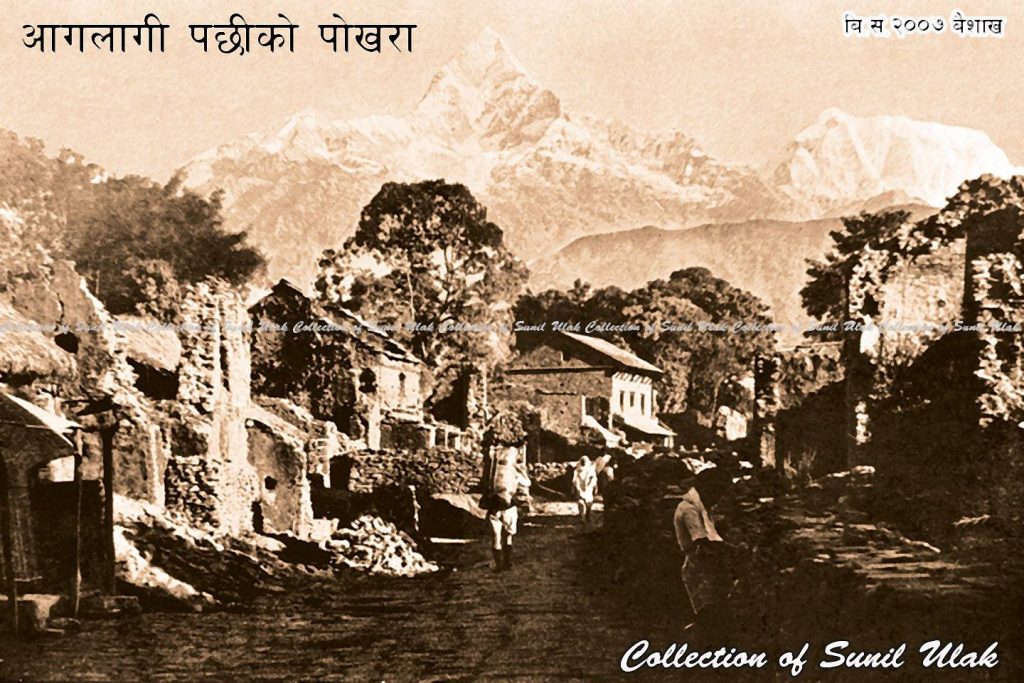 २००६ सालको अग्नीकाण्डको नामबाट चिनिने यस भवितव्यले निकै लामो समयसम्म पोखरामा संकट निम्त्यायो। प्रधानमन्त्री मोहनशम्शेरमा बिन्ती पत्र जाहेर भए पछि तत्कालै छानबिन गर्न सरदार फत्तेबहादुर पाण्डे र क्याप्टेन दिब्यशम्शेर थापा पोखरा आइपुगेका थिए । छानबिन टोलीको अध्ययनपछि केन्द्रबाट तत्कालै रु ३ लाख क्षतिपूर्तिका लागि पठाइयो।