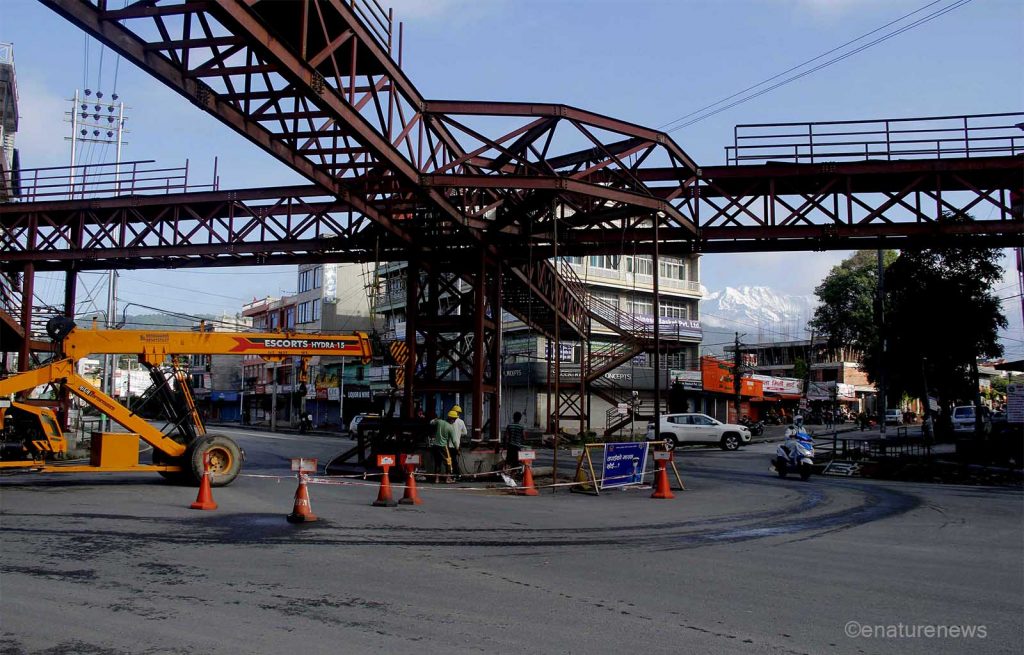 पोखराको सृजनाचोकमा यति बेला आकाशेपुल निर्माण भइरहेको छ । आकाशे पुल निर्माण गर्ने क्रममा अक्सिजन ग्यासको प्रयोग गर्न अक्सिजन सिलिण्डर प्रयोग गरेर काम भइरहेको छ । पोखराको व्यस्त सृजनाचोकमा निर्माण हुँदै गरेको आकाशे पुलमुनि एउटा अक्सिजन सिलिण्डर देखिन्छ ।