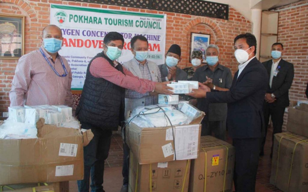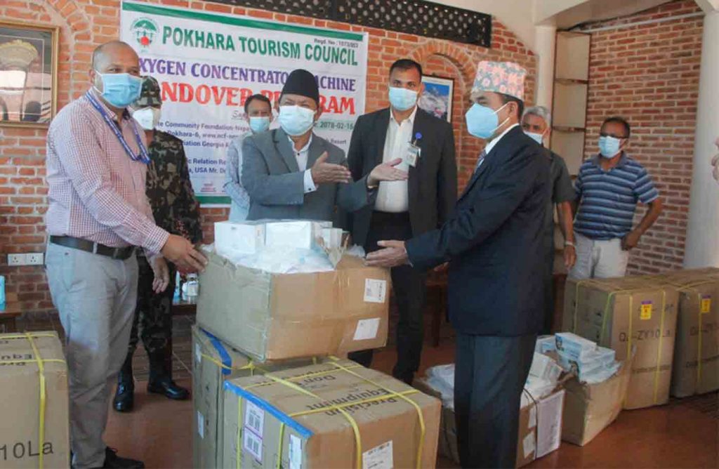 पोखरा पर्यटन परिषदका अध्यक्ष गोपीबहादुर भट्टराईले कोरोना संकटमा जुध्न पोखरा पर्यटन परिषदले अगुवाई गरेर अक्सिजन आफै उत्पादन गर्ने दश लिटरको ६ वटा अक्सिजन कन्सन्ट्रेटर मेसिन सहित अति आवश्यक स्वास्थ्य सामग्री चीनबाट खरिद गरेको बताए । स्वास्थ्य संकटको बेला यो अभियानमा सहयोग गर्ने सबै संघसंस्थालाई परिषदका अध्यक्ष भट्टराईले धन्यवाद व्यक्त गरे ।