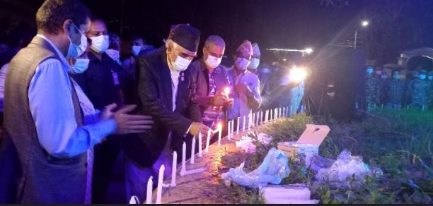 संविधान दिवसका अवसरमा शनिबार साँझ पोखराको सहिदचोकमा दीप प्रज्ज्वलन गर्दै गण्डकी प्रदेशका मुख्यमन्त्री कृष्णचन्द्र नेपाली पोखरेल । संविधान दिवस मुल समारोह समितिले गरेको कायक्रमको संयोजन पोखरा पर्यटन परिषदले गरेको हो । तस्बिर : इनेचर
