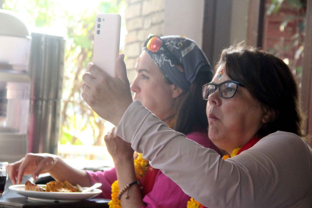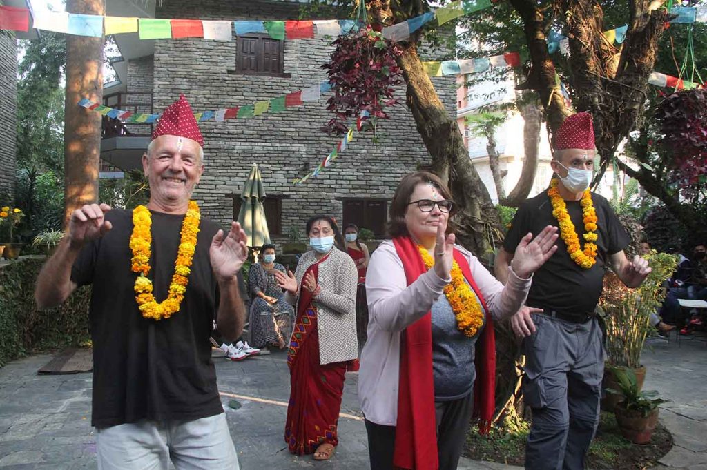 विदेशी नागरिकलाई टिका लगाइदिएपछि उनीहरुलाई सयपत्री पूmलको माला, टोपी र सेलरोटी लगायतका परिकार छात्राहरुले पस्किएका थिए । सो अवसरमा देउसी भैलो तथा सांस्कृतिक कार्यक्रम पर्यटक नाचेर रमाएका थिए । कार्यक्रम सुरु गर्दै संघका महासचिव राजेन्द्र ढकालले तिहार र भाइटिकाको महत्वबारे विदेशी नागरिकलाई जानकारी गराएका थिए ।