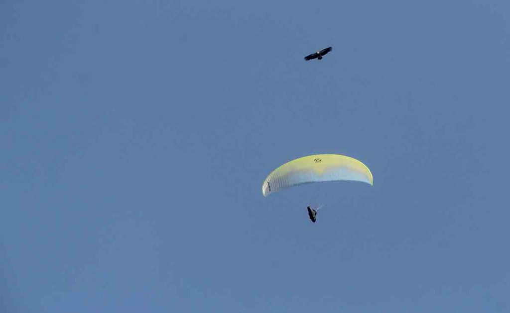 धर्तीमा सिनो खाएर वातावरण सफा गरेर मात्र होइन गिद्ध आकाशमा उड्दा पनि मान्छेका साथमा रमाउने र साथीको भूमीका निर्वाह गर्ने गरेको प्यारा पाइलोटकाे अनुभव रहेकाे छ । सन् १९९८ देखि पोखराको आकाशमा प्याराग्लाइडिङ गर्दै आएका नेपालकै पहिलो व्यवसायिक प्यारापाइलोट राजेश बमजन गिद्धले आकाशमा मान्छेको साथमा रमाउने र साथी जस्तै व्यवहार गर्ने अनुभव सुनाउँछन् ।
