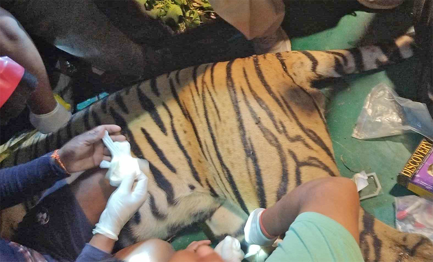 बाघकोे ब्यवहारबाट हात्तीहरु बिच्किएका थिए । राष्ट्रिय प्रकृति संरक्षण कोषबाट २ वटा हात्ती ल्याएर बाघलाई तीनतिरबाट घेरा हालेर डार्ट गर्न सफल भएको चितवन राष्ट्रिय निकुञ्जका सूचना अधिकारी गणशेप्रसाद तिवारीले जनकारी दिएका छन् । नियन्त्रणमा लिएको बाघलाई सौराहामा रहेको निकुञ्जको खोरमा लगेर राखिने सूचना अधिकारी तिवारीले बताए ।